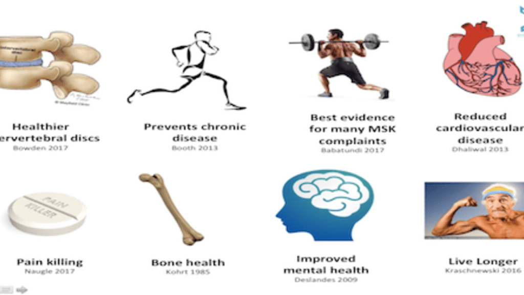 •Research shows that physical activity can also boost self-esteem, mood, sleep quality and energy, as well as reducing your risk of stress, clinical depression, dementia and Alzheimer’s disease.